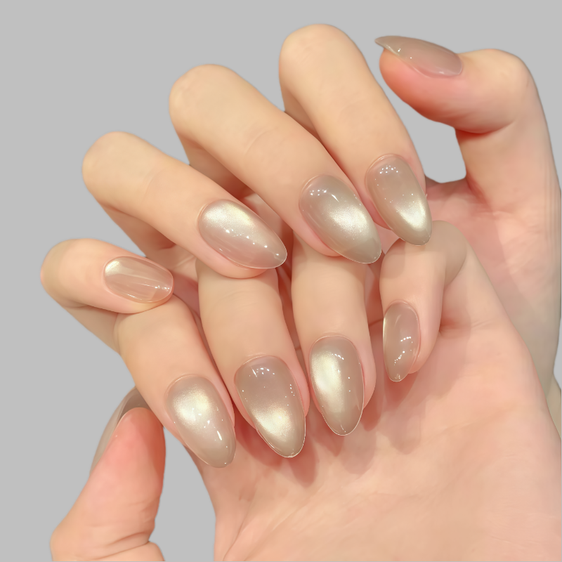 A soft champagne cat-eye set with a glowing pearlescent sheen. Elegant, subtle, and beautifully wearable for any occasion.